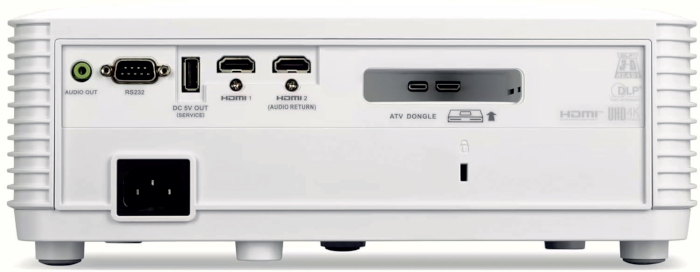 Die Lebensdauer beziffert Acer mit 20.000 Stunden bei hoher Lichtleistung und 30.000 Stunden im Eco-Betrieb. Neben dem vertikalen Lens-Shift ist ein 1,3-faches Zoomobjektiv implementiert, das eine 2,50 Meter breite 16:9-Leinwand aus einer Entfernung von 2,83 bis 3,75 Meter vollständig ausleuchtet. Eine Warping-Funktion ermöglicht es, das projizierte Bild an einen Curved-Screen anzupassen. An HDR-Formaten werden HDR10 und HLG unterstützt.