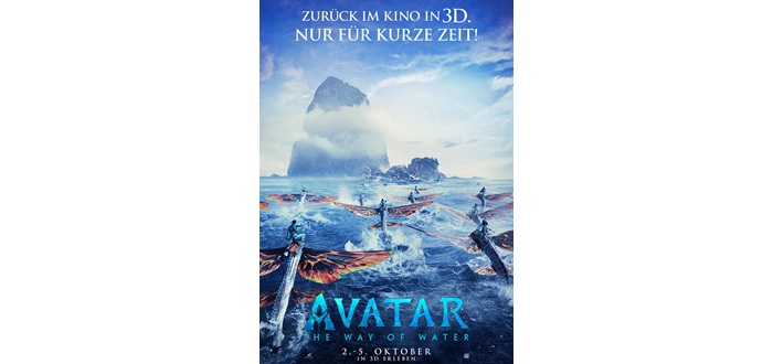 om 2. bis zum 5. Oktober können Kinofans deutschlandweit erneut in die phänomenale Unterwasserwelt von AVATAR: THE WAY OF WATER eintauchen und das erfolgreiche Meisterwerk von James Cameron exklusiv in 3D auf der großen Leinwand erleben! Das bildgewaltige Kinoereignis spielte 2022 weltweit mehr als 2,3 Milliarden USD ein und wurde unter anderem mit dem Oscar für die besten visuellen Effekte ausgezeichnet.