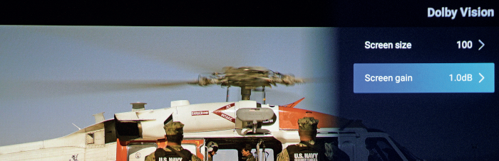 Wird unter „MEMC“ der Reiter „Film“ aktiviert, werden Inhalte mit 24, 50 und 60 Hz originalgetreu reproduziert. Während HDTV-Filme bereits natürlich aussehen, begeistern uns die Farben von Spielfilmen in High-Dynamic-Range. Der Projektor schaltet selbstständig in die Presets für Dolby-Vision und HDR10+, sobald ein entsprechendes Signal anliegt. Sämtliche HDR-Inhalte reproduziert er von 0 bis 4.000 Nits mittels dynamischem Tone-Mapping. Selbst schwierige Filme wie „Sully“ verschlucken keine Inhalte. Mit unseren Einstellungen wird förmlich ein Grauschleier von dunklen Szenen gezogen. Das Rec.2020-Profil sorgt überdies für prachtvolle Farben.