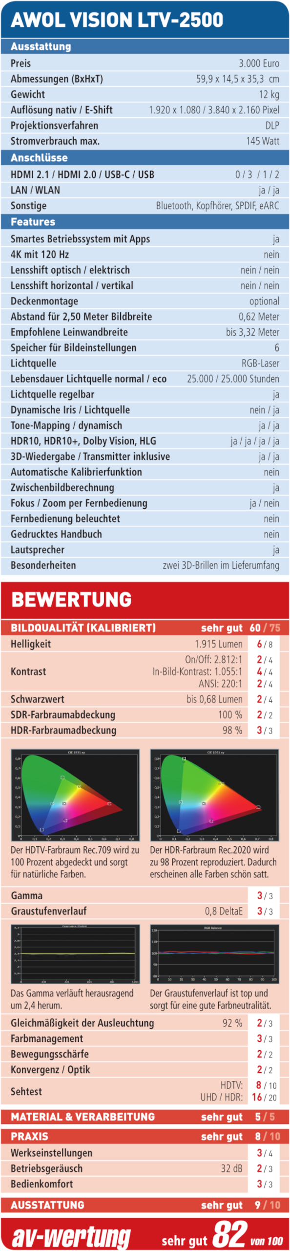 Der Testbericht Awol Vision LTV-2500 (Gesamtwertung: 82, Preis/UVP: 3.000 Euro) ist in audiovision Ausgabe 5-2025 erschienen.