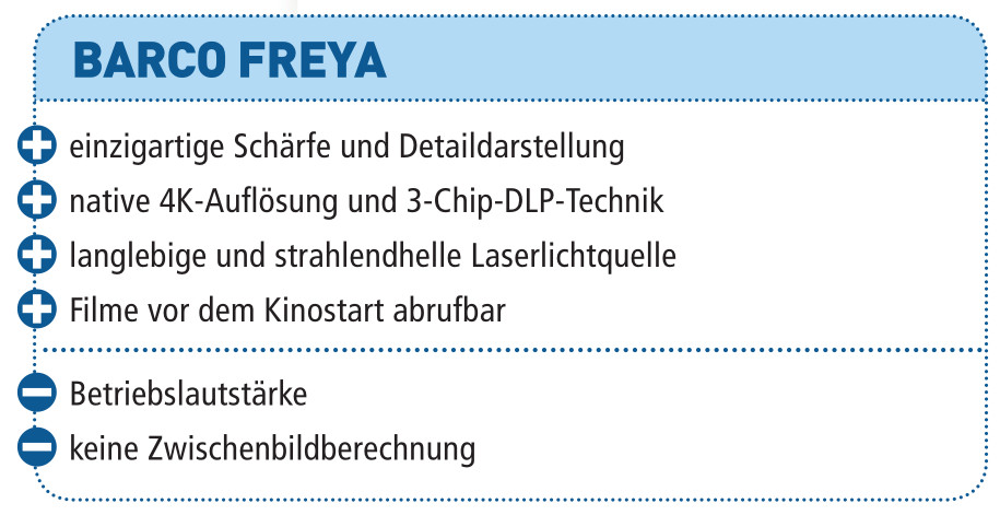 Als erster DLP-Projektor kombiniert der Barco Freya eine native 4K-Auflösung mit neuester 3-Chip-Technologie. Mit dem in vielerlei Hinsicht außergewöhnlichen Bildwerfer lassen sich sogar aktuelle Blockbuster vor dem Kinostart abspielen – und das ist noch nicht alles.