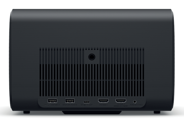 Das Weitwinkelobjektiv besitzt eine Festbrennweite. Aus einer Entfernung von 3,00 Metern wird eine 2,50 Meter breite 16:9-Leinwand komplett ausgeleuchtet. Ein Autofokus stellt die Schärfe punktgenau ein. Überdies sorgt der Beamer selbstständig für eine Geometrieanpassung. Ein Umgebungslichtsensor analysiert fortwährend das Raumlicht und passt die Helligkeit an. Dank „Cinematic Color“ bietet der Projektor bereits ab Werk konsistente Farben.