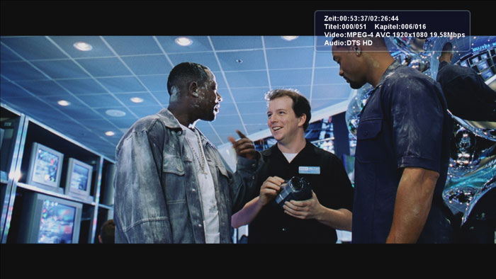 Aufgrund der langen Laufzeit und drei DTS-HD- Spuren liegt die Videobitrate meist nur um 20 Mbit/s.