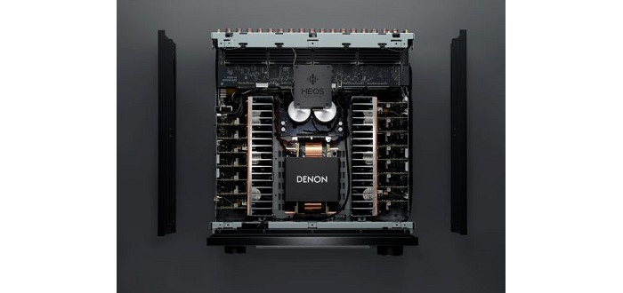 Der AV-Verstärker Denon AVC-A1H ist auf revolutionäre Heimkino-Erlebnisse ausgelegt. Sein massiver Transformator bringt allein 11,5 kg auf die Waage und seine Doppel-Siebelektrolytkondensatoren mit je 33.000 µF versorgen spielend 15 Verstärkerkanäle mit je 210 Watt Leistung.