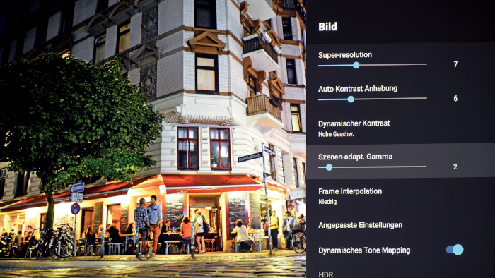 Neben dieser Helligkeitsregelung gibt es die digitalen Kontrastverstärker. Diese verändern unabhängig von der obigen Laserlicht-Regelung die Gammakurve je nach Inhalten. Vor allem dunkle Bereiche werden angehoben. Hierbei interagieren die drei Tools „Super-resolution“, „Auto Kontrast Anhebung“ und „Szenen-adapt. Gamma“.