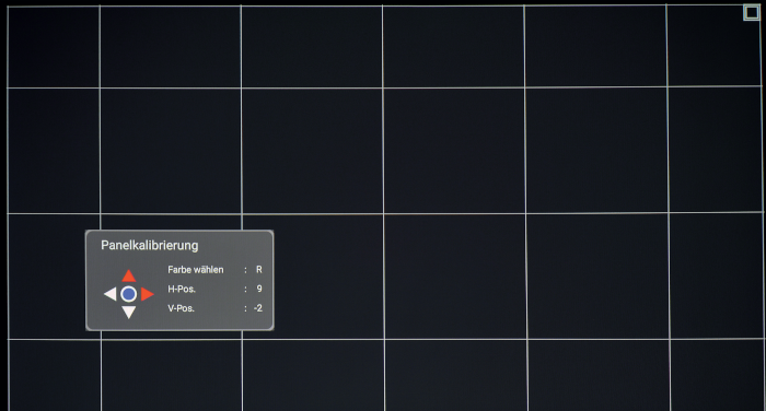 Mit der „Panelkalibrierung“ hat Epson dem EHLS650 ein Feature spendiert, mit dem der Nutzer die Konvergenz exakt einstellen kann. Entweder auf der gesamten Bildfläche oder mittels 4-Ecken-Anpassung. Bei Letzterer können jeweils in einem Viertel des Bildes RGB horizontal und vertikal angepasst werden. Das gelingt in der Praxis so gut, dass wir nach der Anpassung keine Konvergenzfehler mehr ausmachen können. Sinnvoll ist dieses Tool, weil durch die extreme Weitwinkel-Optik des Beamers Farbsäume abhängig von der Bildgröße auftreten können.