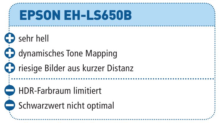 Beim EH-LS650B bewirbt Epson erstmals sein dynamisches Tone Mapping, um HDR-Inhalte bestmöglich zu projizieren. Doch der jüngste Zugang der EpiqVision-Projektor-Serie hat noch erheblich mehr zu bieten, wie unser Test zeigt.