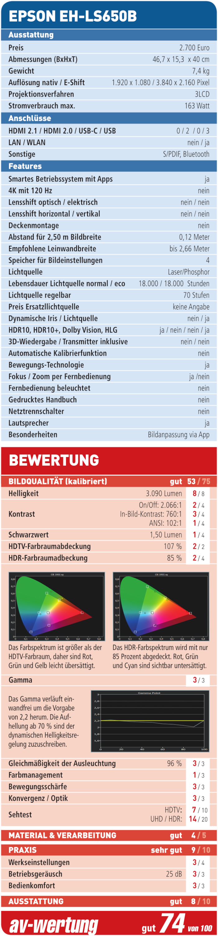 Der Testbericht Epson EH-LS650B (Gesamtwertung: 74, Preis/UVP: 2.700 Euro) ist in audiovision Ausgabe 12-2023 erschienen.