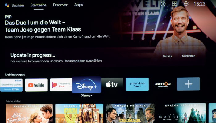 Android TV ist als Betriebssystem installiert und für Streaming und Smartfunktionen zuständig. Überdies wird Chromecast unterstützt. Zahlreiche Apps sind vorinstalliert, weitere können über den Google Play Store heruntergeladen werden. Dazu gehören natürlich auch kostenpflichtige Dienste wie Disney+, AppleTV, Prime Video und Zattoo. Wünschenswert wären noch Antennenanschlüsse, CI-Slot und Tuner, um einen Fernseher vollständig zu ersetzen.