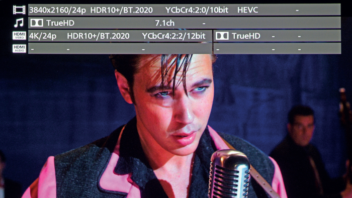Die hohe Lichtausbeute im Zusammenspiel mit der fantastischen Schärfe und dem großen DCIP3-Farbraum sorgen für eine brillante HDR-Performance. Nachtaufnahmen sind wunderbar plastisch und frei von einem Grauschleier. Es läuft nichts im Schwarz zu. Tageslichtszenen begeistern ebenfalls mit prachtvollen Bildern. Signale von 0 bis 4.000 Nits werden reproduziert. Das dynamische Tone-Mapping gibt sich kaum eine Blöße. Allenfalls in „Sully“ sind nicht alle Inhalte auf den Displays am Times Square zu sehen. Andere Filme wie „Elvis“, der in HDR10+ projiziert wird, und „West Side Story“ begeistern mit messerscharfen Bildern. Bis zum Rand sind kleinste Buchstaben zu lesen. Bewegungen erscheinen realistisch. Darüber hinaus werden TV-Signale in SDR von 720p und 1080i perfekt auf die UHD-Auflösung des Projektors hochskaliert. Die Farben innerhalb des Rec.709-Spektrums werden komplett auf der Leinwand abgebildet.
