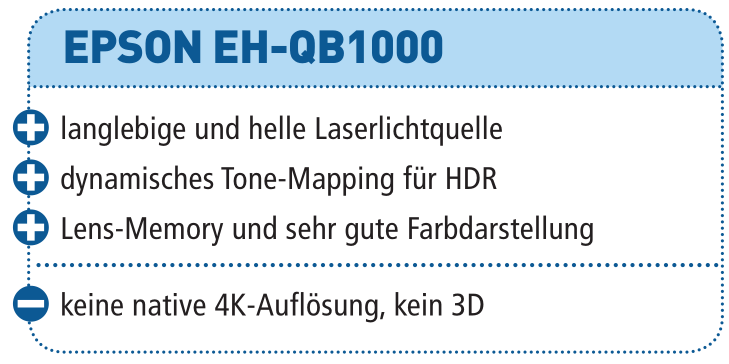 Der Testbericht Epson EH-QB1000 (Gesamtwertung: 91, Preis/UVP: 5.500 Euro) ist in audiovision Ausgabe 5-2025 erschienen.