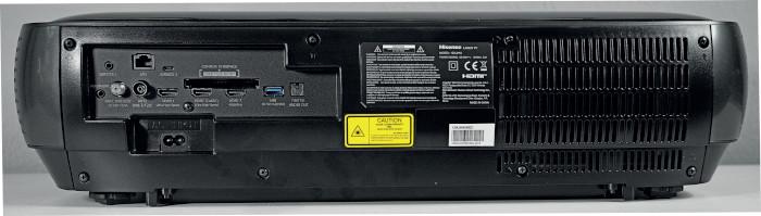 Der Hisense 120L9HA besitzt drei HDMI-Eingänge, wovon einer eARC unterstützt. Ein Kopfhöreranschluss, LAN und Digital Out für die Tonübertragung sind vorhanden. Der USB-Port kann zur Stromversorgung genutzt werden. Eine weitere USB-Schnittstelle befindet sich an der rechten Gehäuseseite, um eine USB-Festplatte anzuschließen. Zwei Antennenbuchsen und ein CI+ Slot komplettieren das Anschlussfeld.