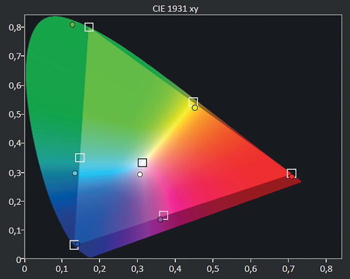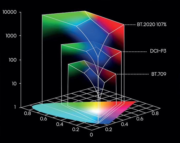 Unsere Messung belegt, dass das Farbspektrum des L9HA ab Werk größer ist als der Farbraum Rec.2020.
