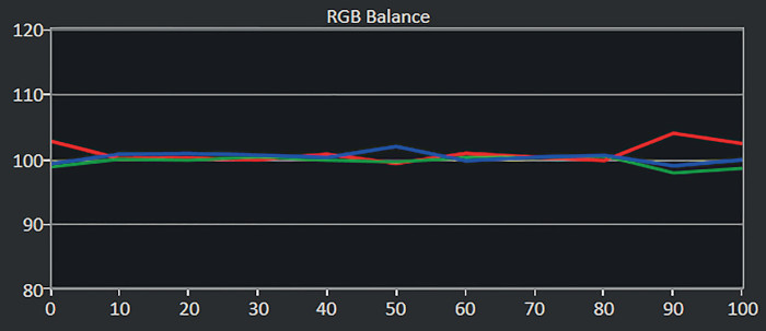 Unsere Messung belegt, wie hervorragend der Graustufenverlauf eingestellt werden kann. Alle Abstufungen von 0 bis 100 Prozent sind farbneutral.