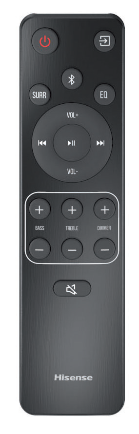 An Decodern hat Hisense Dolby Digital, Dolby Digital Plus und DTS Virtual:X für den künstlich aufgeblasenen 3D-Ton integriert; PCM ist selbstredend mit dabei. Virtual:X lässt sich über die „SURR“-Taste an der Fernbedienung aktivieren, mit der „EQ“-Taste werden die 6 Klangprogramme aufgerufen. Zur Wahl stehen „Movie“, „Music“, „News“, „Night“, „Sport“ und „Game“. Zudem kann man einen „BassBoost“ aktivieren. Die zusätzliche Tiefton-Anhebung tat der Bar ganz gut, Wunder darf man im unteren Frequenzkeller aber nicht erwarten. Der „Powerful Bass“ im Dolby Atmos-Trailer „Amaze“ war immerhin hörbar, wenn auch nicht besonders gewaltig. Der Panzer im Finale von „Ghost in the Shell“ versprühte ebenfalls nur einen Teil seiner subsonischen Gewalt und Größe; da haben andere Soundbars mit Tiefton-Begleiter mehr drauf – aber die kosten gerne mal das Doppelte.