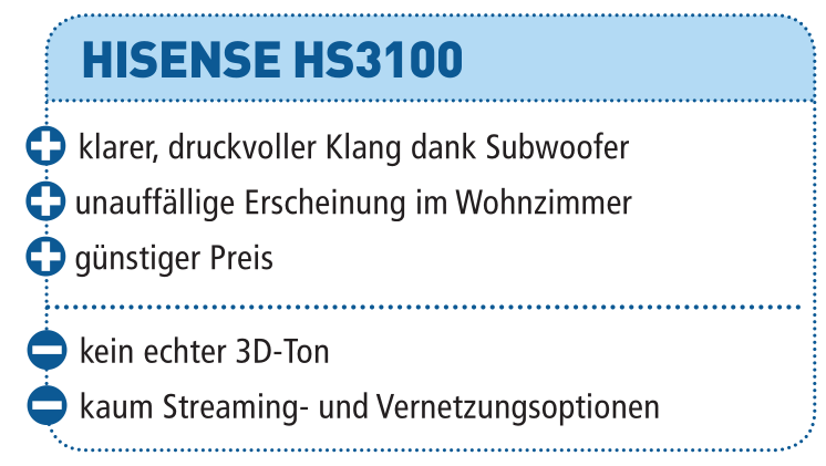 Der Testbericht Hisense HS3100 (Gesamtwertung: 60, Preis/UVP: 250 Euro) ist in audiovision Ausgabe 4-2025 erschienen.