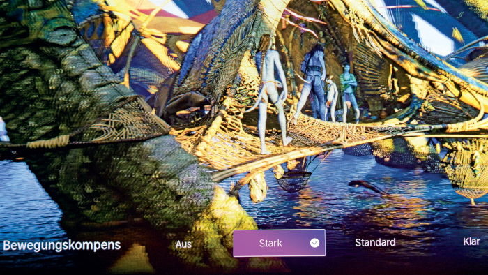 Die Bewegungskompensation lässt sich in vier Stufen einstellen, bleibt bei 3D-Filmen allerdings wirkungslos.