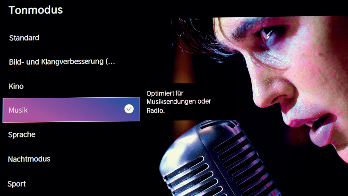 Guter Sound: Der Tonmodus „Musik“ bietet für unsere Ohren den besten Klang. Der „Nachtmodus“ macht Stimmen lauter und Explosionen leiser.