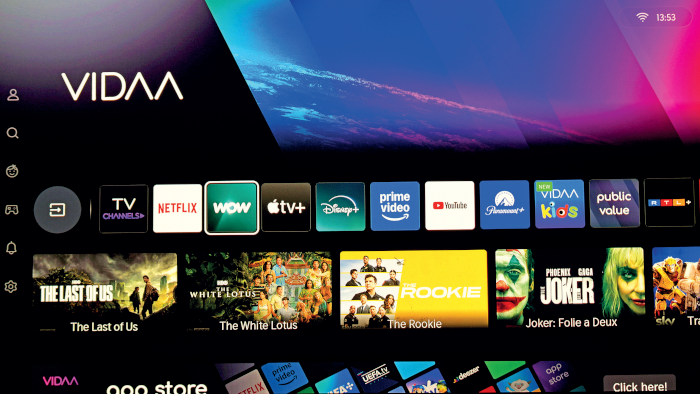 Das von den hauseigenen Fernsehern bekannte Betriebssystem VIDAA bringt jede Menge Streamingdienste mit – von Apple TV+ über Netflix bis WOW ist alles Namhafte abrufbar.