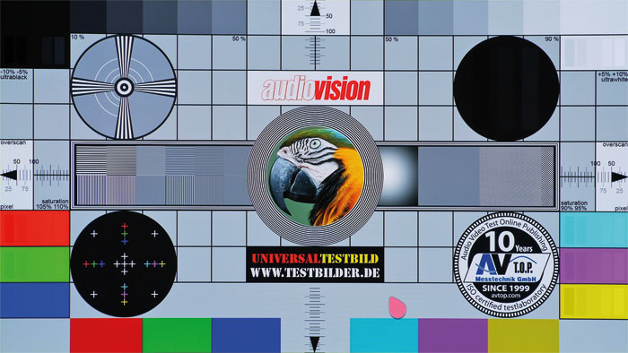 Ein weiteres Manko der OLED-Technik stellen Einbrenneffekte dar: Ähnlich wie bei Röhren- oder Plasma-TVs hinterlassen statische, unbewegte Bilder mit der Zeit ihre Spuren in Form von Schatten sowie Umrissen auf dem Display; das gilt auch für Senderlogos. Glücklicherweise verschwinden die Mängel früher oder später wieder, können in farblich monotonen Szenen aber dennoch stören. Am schnellsten lassen sich Einbrenneffekte übrigens mittels Rauschsequenzen beseitigen, obgleich harte Kontrastkanten wie in unserem Universaltestbild eventuell mehrere Durchgänge erfordern.