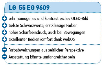Es waren nur wenige Punkte, die den 65 EG 9609 in audiovision 6-2015 von der Referenzklasse trennten. Schuld daran sind mitunter die Abschattungen an den Bildrändern sowie die Farbabweichungen aus seitlicher Perspektive. Zwar offenbart auch der 2.000 Euro günstigere 55-Zöller die eine oder andere Schwäche, bietet unter dem Strich aber das bessere Preis-Leistungs-Verhältnis.