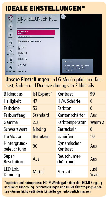 Unter dem Strich liefert das LCD-Flaggschiff von LG ordentliche Farben und einen angesichts des ultra­flachen Designs eindrucksvollen Klang. Lob verdient auch das komfortable webOS-Bedienkonzept. Der Kontrast und die Qualität der Local-Dimming-Schaltung spielen hingegen nicht in der Top-Liga.