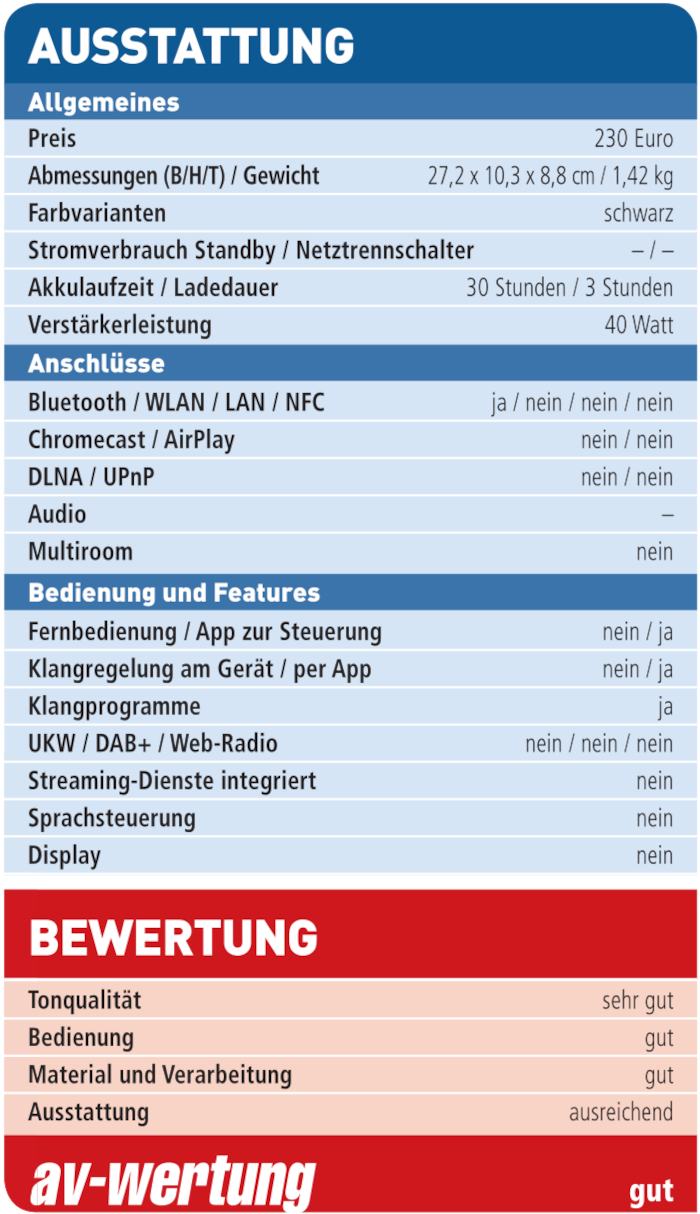 Die klare Klangkulisse überzeugt genauso wie die lange Akkulaufzeit und das stilsichere Äußere. Bei den Anschlüssen wurde aber gespart.
