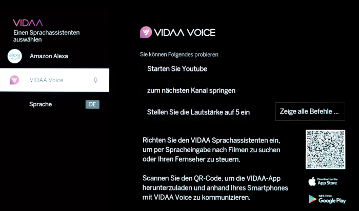 Alexa oder VIDAA Voice: Im TV-Menü kann man festlegen, welchen der beiden Sprachassistenten man verwenden möchte.