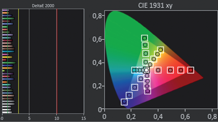 Auch im DCI-P3-Spektrum läuft der inspire 65 dr+ zur Höchstform auf. Alle Messpunkte sitzen exakt.
