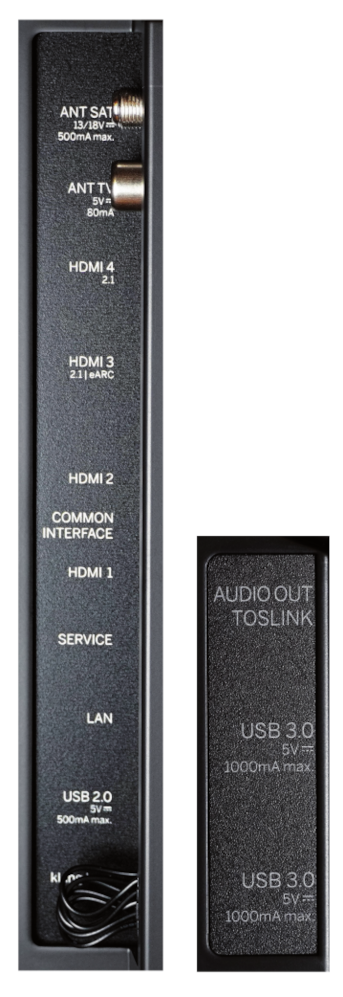 Das reine Panel des 65-Zoll-Boliden ist nur wenige Millimeter dünn, inklusive Anschlüssen kommt der Apparat auf 6,4 Zentimeter. Für eine freie Montage im Raum, wahlweise auf dem mitgelieferten drehbaren Tischfuß oder einer optional erhältlichen Aufstelllösung, ist die Rückwand des in Deutschland gefertigten Fernsehers teils mit grauem Stoff bezogen und lackiert. Das untermauert Loewes Premium-Anspruch. Magnetische Abdeckungen verleihen dem Gerät einen noch cleaneren Look. Kabel lassen sich sauber verlegen, und die Anschlüsse sind weitgehend versteckt in die Rückwand integriert. Für die Wandmontage unterstützt der OLED die VESA-Norm 300 x 200 Millimeter.