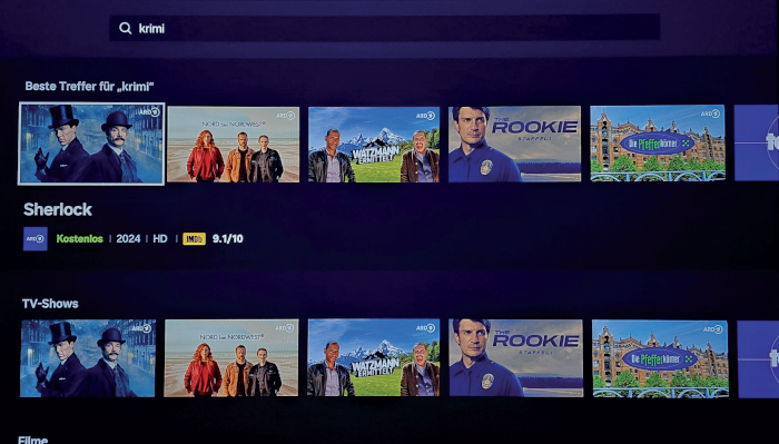Flexible Suche: Über die Lupe lässt sich der Loewe blitzschnell beispielsweise nach einem bevorzugten TV-Genre wie einem Krimi durchforsten.
