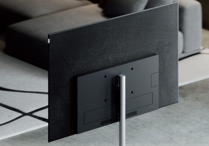 Den stellar gibt es in drei verschiedenen Farb- und Materialkombinationen. Bis zu einer Panel-Größe von 65 Zoll kann man aus einer TV-Rückwand in Beton-natur oder Lava-schwarz und Aluminium wählen. Für die Farbvariante „alu black + lava“ (42 bis 65 Zoll) wird bei der Herstellung des Displaymoduls das massive Profil des Display-Alurahmens in zusätzlichen Arbeitsschritten schwarz eloxiert. Zudem wird der Beton der Rückwand mit Pigmenten aus Lava-Gestein schwarz eingefärbt und zum Schutz der Oberfläche transparent versiegelt.