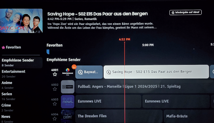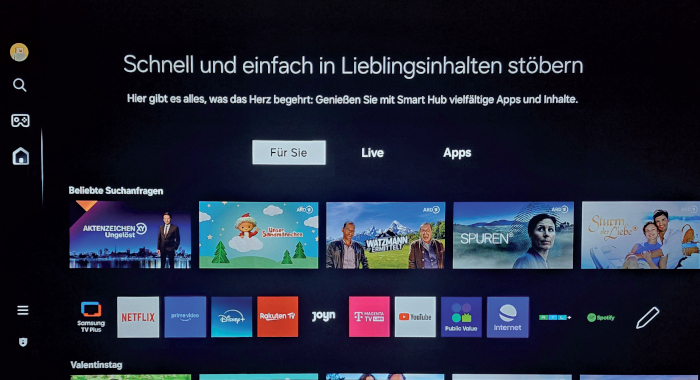 Samsung TV Plus: Zahlreiche Streaming-Inhalte lassen sich über das kostenlose Samsung-Portal auf dem stellar 77 dr+ abrufen.