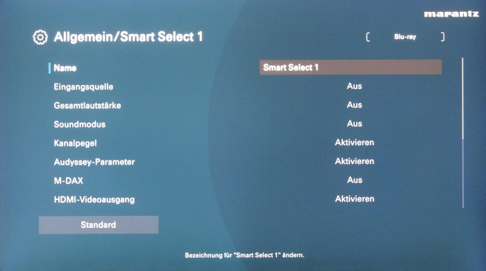 Angesichts zweier Einmess-Systeme, EQ-Option und der vielen Möglichkeiten zur Lautsprecher-Konfiguration mit 16 Kanälen hätten wir uns lieber 4 statt nur 2 Speicher zur Sicherung unterschiedlicher Einstellungen bei Lautsprechern und Einmess-Systemen gewünscht. Sehr praktisch sind allerdings die Schnellwahltasten („Smart Select“), über die man mit einem Tastendruck diverse frei definierbare Boxen- und Klang-Parameter aktivieren kann, darunter auch die zwei Lautsprecher- Konfigurations-Presets samt Einmess-System.