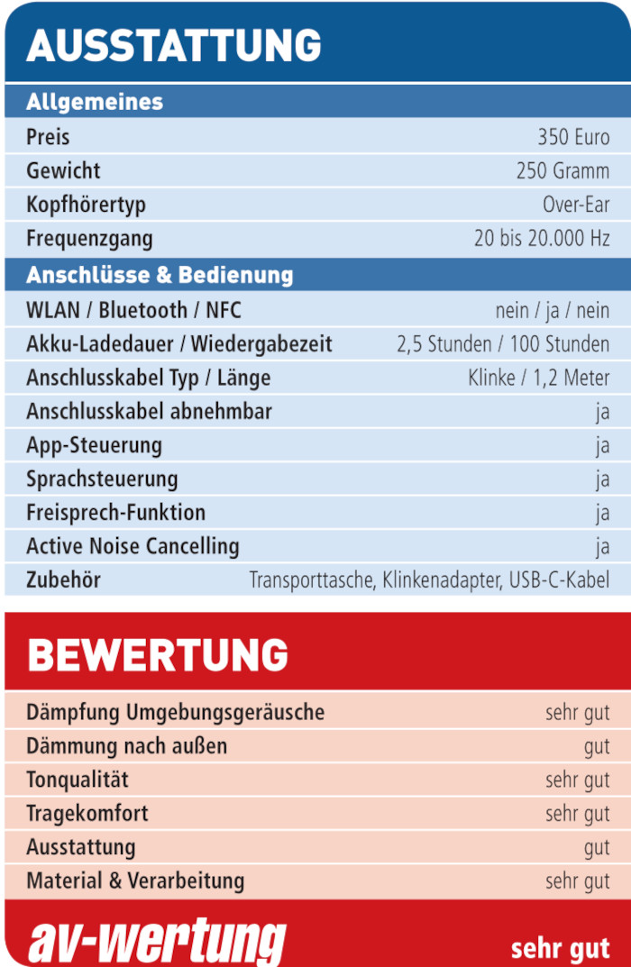 Klang und Tragekomfort des Over-Ear überzeugen auf ganzer Linie. Auch die lange Akkulaufzeit und die Tragetasche gefallen. Das alles lassen sich die Amerikaner allerdings gut bezahlen.
