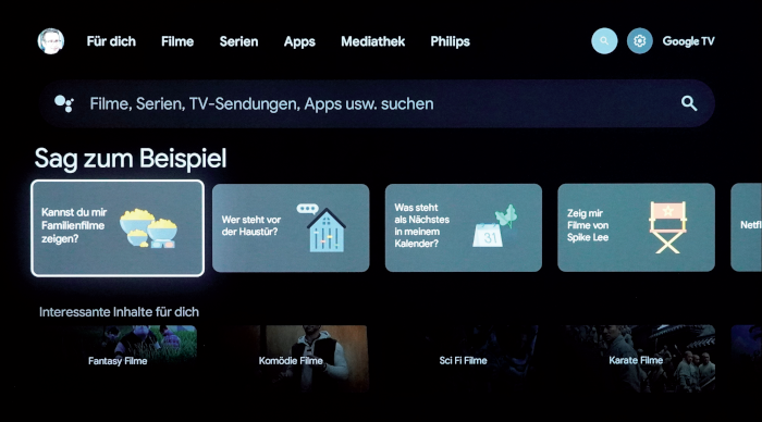 Versteht man auf Anhieb: Google TV erfordert keine lange Eingewöhnungszeit. Die übersichtliche Oberfläche gestattet ein intuitives Handling.