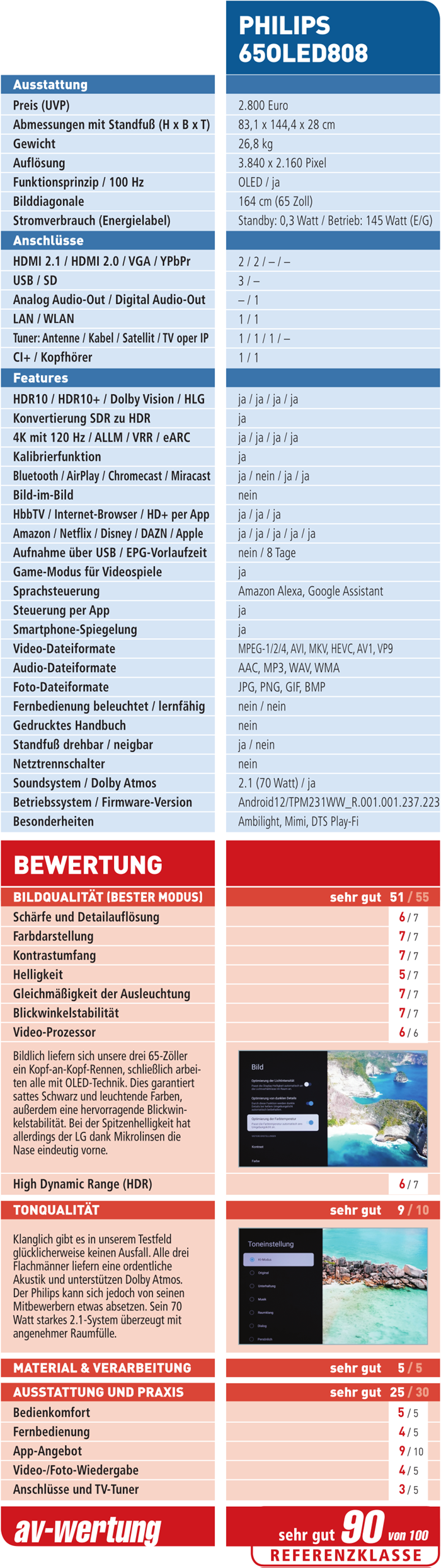 Der Testbericht Philips 65OLED808 (Gesamtwertung: 90, Preis/UVP: 2.800 Euro) ist in audiovision Ausgabe 3-2024 erschienen.