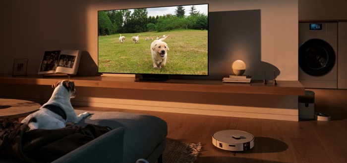 Und wer sich neben menschlichen auch um tierische Familienmitglieder kümmern möchte, findet Hilfe bei der Bespoke AI Jet Bot Steam-Serie. Ganz einfach kommt der Live-Feed von der Frontkamera auf das Mobilgerät der Nutzer*innen. Der Hund bellt? Dann kann er mit Musik aus den Boxen des Saug- und Wischroboters beruhigt werden – hilfreich und entlastend, etwa wenn man sich verspätet und der pelzige Mitbewohner allein daheim ist.