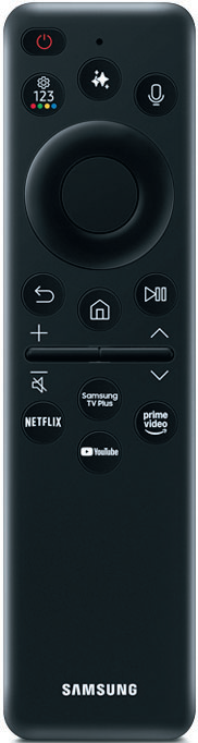 Samsung hat an seiner Fernbedienung kaum verändert. Sie liegt super in der Hand und wird per Sonnen- bzw. Kunstlicht oder via USB geladen. Durch die wenigen Tasten sind Mehrfachbelegungen unumgänglich. Über die neue AI-Taste kann man jederzeit Informationen zu aktuellen TV-Sendungen aufrufen.