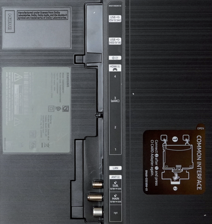 Für eine überzeugende Akustik werkelt im 65-Zöller wie beim Vorgänger ein 60 Watt starkes 4.2.2-Soundsystem. Während beim Bild die Unterstützung von Dolby Vision fehlt (nur HLG, HDR10 und HDR10+ Adaptive), kommt beim Ton Dolby Atmos zum Einsatz. Sprachverständlichkeit und Raumfülle überzeugen, auch bei höheren Pegeln spielt der Samsung souverän und weitgehend frei von Verzerrungen.