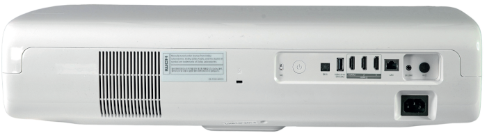 Mit 29 Dezibel ist der Samsung The Premiere 9 zwar kein Leisetreter, weil die großen Lüfter aus drei Meter Distanz noch zu hören sind, störend empfinden wir das sonore und gleichmäßige Betriebsgeräusch allerdings nicht. Sobald Actionszenen ertönen oder Dialoge im Vordergrund stehen, ist der Ultrakurz distanz-Projektor unauffällig. Den technisch bedingten Regenbogen-Effekt können wir kaum noch provozieren. Allenfalls im Abspann fällt uns ab und an leichtes Farbblitzen auf. Zu verdanken ist das dem Umstand, dass kein Farbrad verbaut ist und die Laserdioden extrem schnelle Schaltzeiten besitzen.