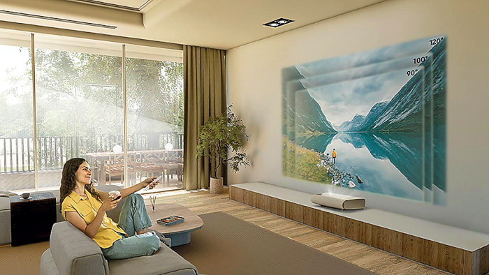 Der Samsung The Premiere 9 ist ein DLP-Projektor mit Ein-Chip-Technologie, der mittels Pixel-Shift bis zu 3.840 x 2.160 Pixel sequenziell projiziert. Über 20.000 Stunden beträgt die Lebensdauer der Laserlichtquelle, die aus roten, grünen und blauen (RGB) Laserdioden besteht. Wer den Samsung wie einen Fernseher vier Stunden täglich verwendet, kann ihn über 13 Jahre betreiben – erst dann hat er 50 Prozent seiner ursprünglichen Lichtausbeute verloren.