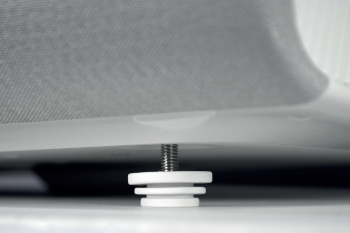 The Premiere 9 bringt stattliche 11,6 Kilogramm auf die Waage. Damit steht er sicher auf dem Sideboard und verrutscht nicht so leicht, wenn man mal versehentlich dagegen kommt. Die Füße zur Nivellierung besitzen Gummiunterlagen, so dass keine Gefahr von unschönen Kratzern auf dem Möbelstück besteht. Mit einer Standfläche von 55 x 38 Zentimetern passt er auf alle gängigen Sideboards. Bilddiagonalen bis 130 Zoll projiziert er aus wenigen Zentimetern Abstand, wie auf dem Hintergrundbild dieser Doppelseite zu sehen. Das Gehäuse ist in Weiß gehalten, ebenso die Lautsprecherbespannung, welche die Vorderseite des Beamers umfasst. Mit einer Leistungsaufnahme von 209 Watt ist der Samsung ausgesprochen genügsam für einen Projektor, der nominell eine Lichtausbeute von 3.200 Lumen besitzt. Im Stand-by verbraucht er erwartungsgemäß nur 0,3 Watt.