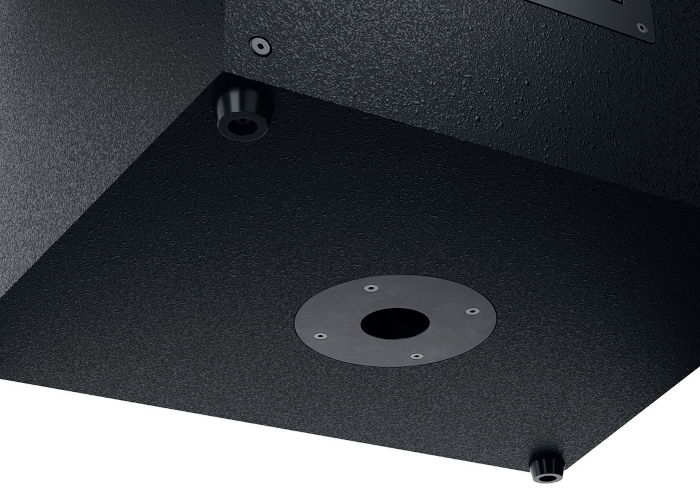 Für den Bühneneinsatz ist an der Unterseite der SumoBox-Pro eine 35-mm-Bohrung für ein Stativ verbaut.