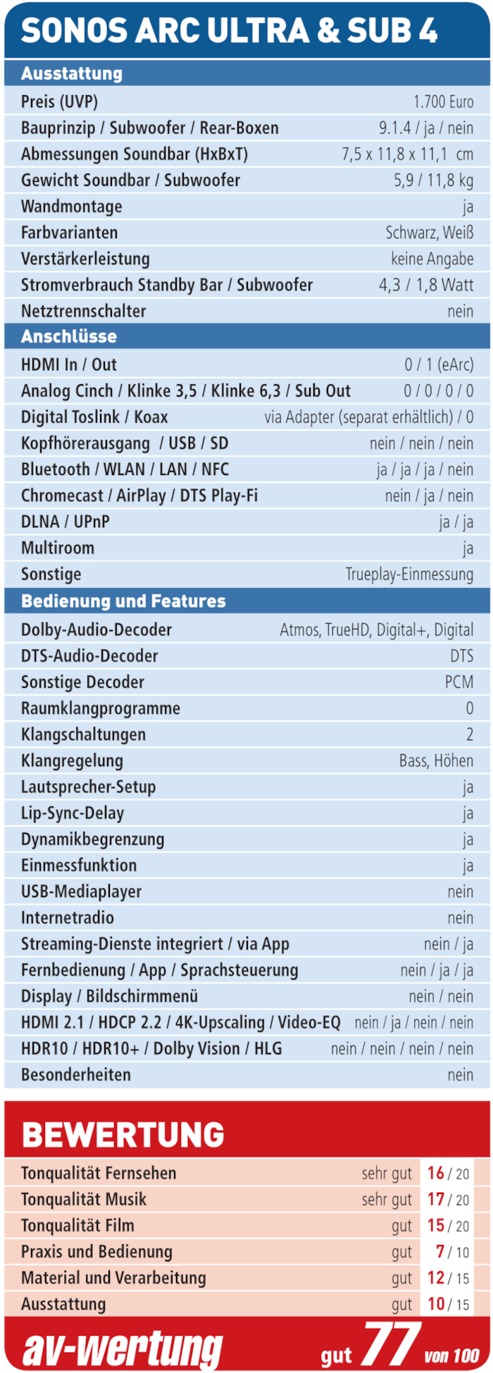 Der Testbericht Sonos Arc Ultra & Sub 4 (Gesamtwertung: 77, Preis/UVP: 1.700 Euro) ist in audiovision Ausgabe 5-2025 erschienen.