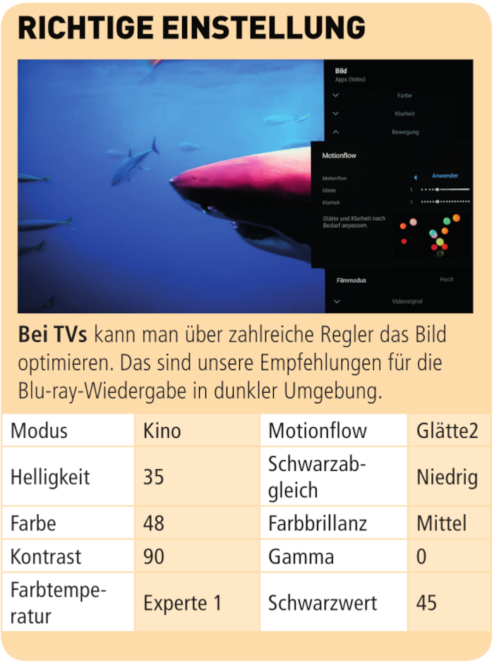 Super Schwarz ist das eine, aber der Sony kann auch hell, und zwar richtig hell. Mit bis zu 1.560 Candela im „Standard“-Modus schafft der Japaner im Test noch 100 Candela mehr als der Vorgänger. Im „Brillant“-Modus ist der Flachmann nicht leuchtstärker. Der „Kino“-Modus bringt es in Spitzlichtern auf stolze 1.308 Candela, 956 bzw. 691 Candela sind es im 50- bzw. 100-Prozent-Weißfeld. Der ANSI-Kontrast liegt bei 2.200:1. Abgesehen von HDR10+ unterstützt der Mini-LED-TV die HDR-Formate HLG, HDR10 und Dolby Vision. Grandios, wie der 65-Zöller speziell Dolby-Vision-Titel mit ungeheurer Brillanz und plakativen Farben zum Leben erweckt. Die Entspiegelung des Panels ist top, und auch die seitliche Blickwinkelstabilität überzeugt.