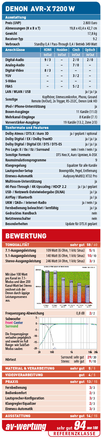 Der Testbericht Denon AVR-X 7200 W (Gesamtwertung: 94, Preis/UVP: 2800 Euro) ist in audiovision Ausgabe 5-2015 erschienen.
