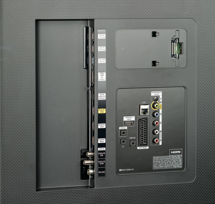 Im Hinblick auf die Ausstattung hat der Samsung keine schlechten Karten: Zwar kommt er ohne die externe One-Connect-Box daher, unterstützt mit HDMI 2.0, HDCP 2.2 sowie HEVC aber schon ab Werk alle aktuellen Heimkino-Standards respektive 4K-Formate – zukünftige Technologien lassen sich per aufpreispflichtigem UHD Evolution Kit nachrüsten. Für ein hohes Arbeitstempo und kurze Ladezeiten sorgt der integrierte Quad-Core-Prozessor, während die Clear Motion Rate von 1.000 Hertz eine flüssige Bewegungsdarstellung gewährleistet.