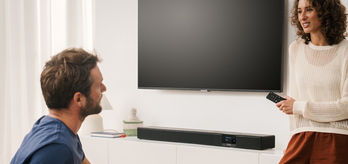 Mit ihrem eleganten Frontgitter aus Metall, der integrierten Wandhalterung und dem vollständig dimmbaren Display fügt sich die CINEBAR 22 wahlweise in einer schwarzen oder weißen Ausführung nahtlos in moderne Wohnzimmer ein. Die Bedienung erfolgt komfortabel über das Touchfeld an der Soundbar oder über die mitgelieferte Fernbedienung. Neben modernen HDMI 2.1 Ein- und Ausgänge mit 4K Pass-Through und eARC bietet die Soundbar dank Bluetooth 5.3 mit AAC auch kabellos die Möglichkeit, Musik von Smartphones und weiteren Quellen wiederzugeben.