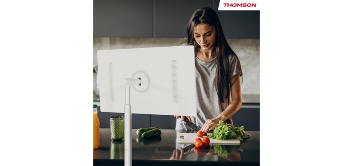 Mit dem THOMSON Go TV wird Fernsehen mobil: Akku und Rollen sorgen dafür, dass Entertainment überall abrufbar ist – kurz gesagt: der Fernseher, der mitzieht. Der THOMSON Go TV ist für 499 Euro erhältlich – flexibel, smart und für den Alltag bereit.